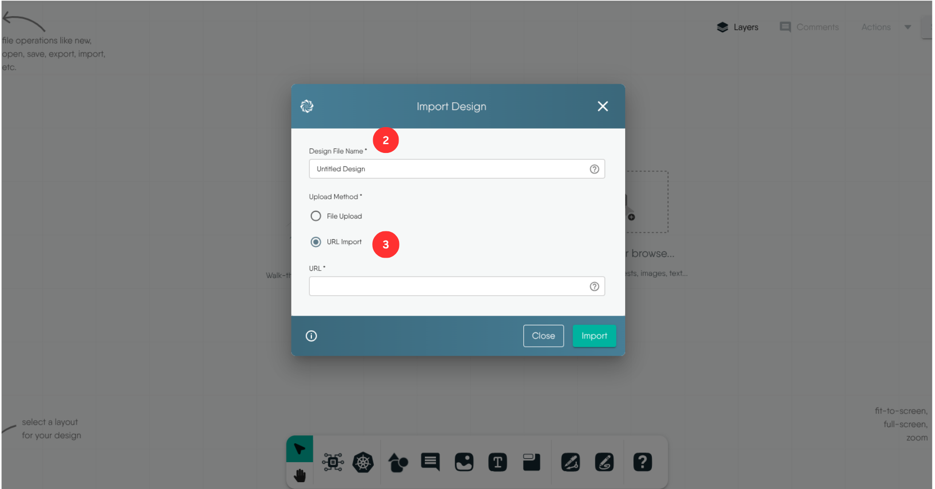 1. Click the Import design option under the Designs tab in Kanvas.