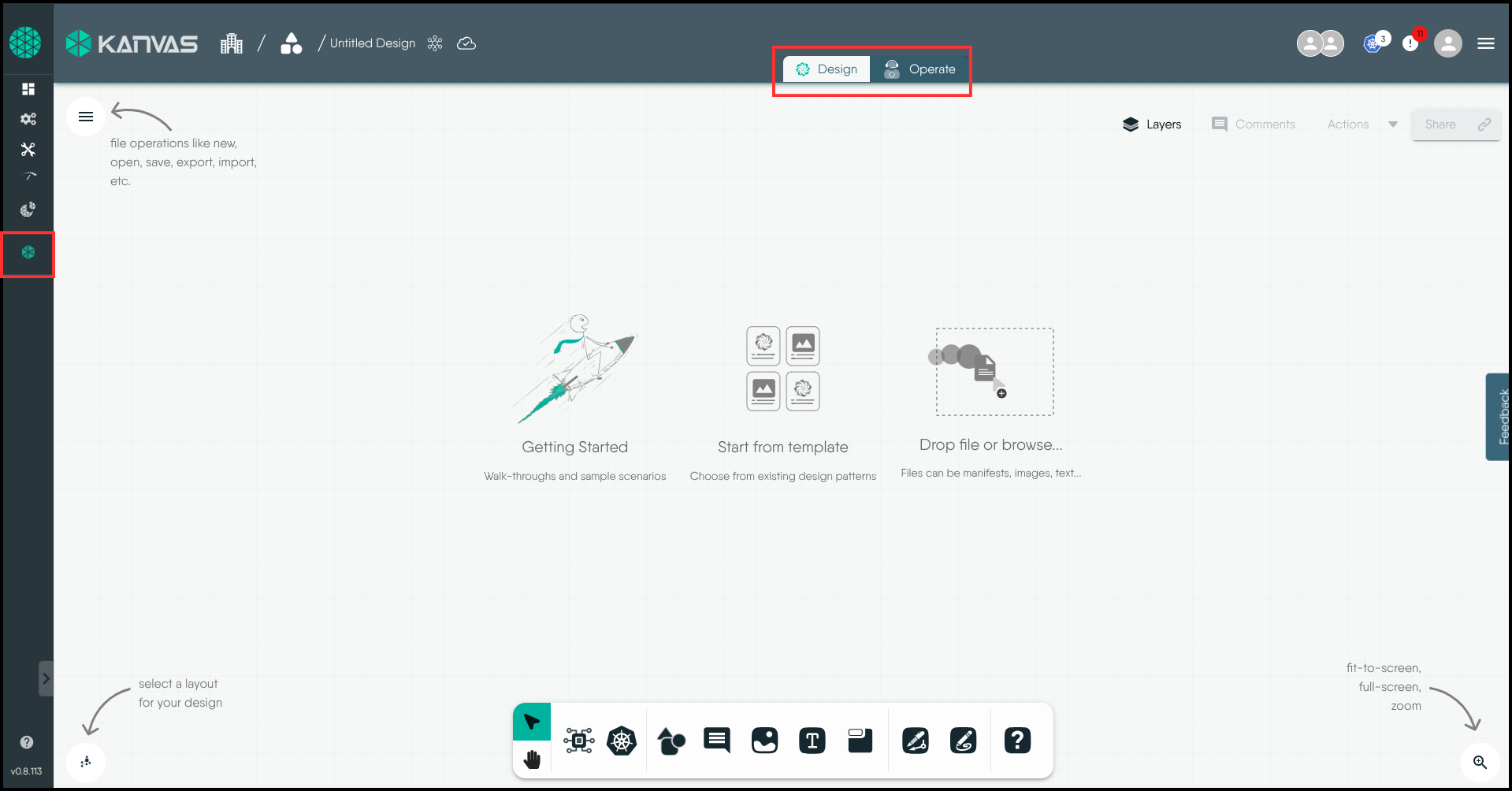 1. On the left sidebar, click the Kanvas icon to open Kanvas in Designer mode.